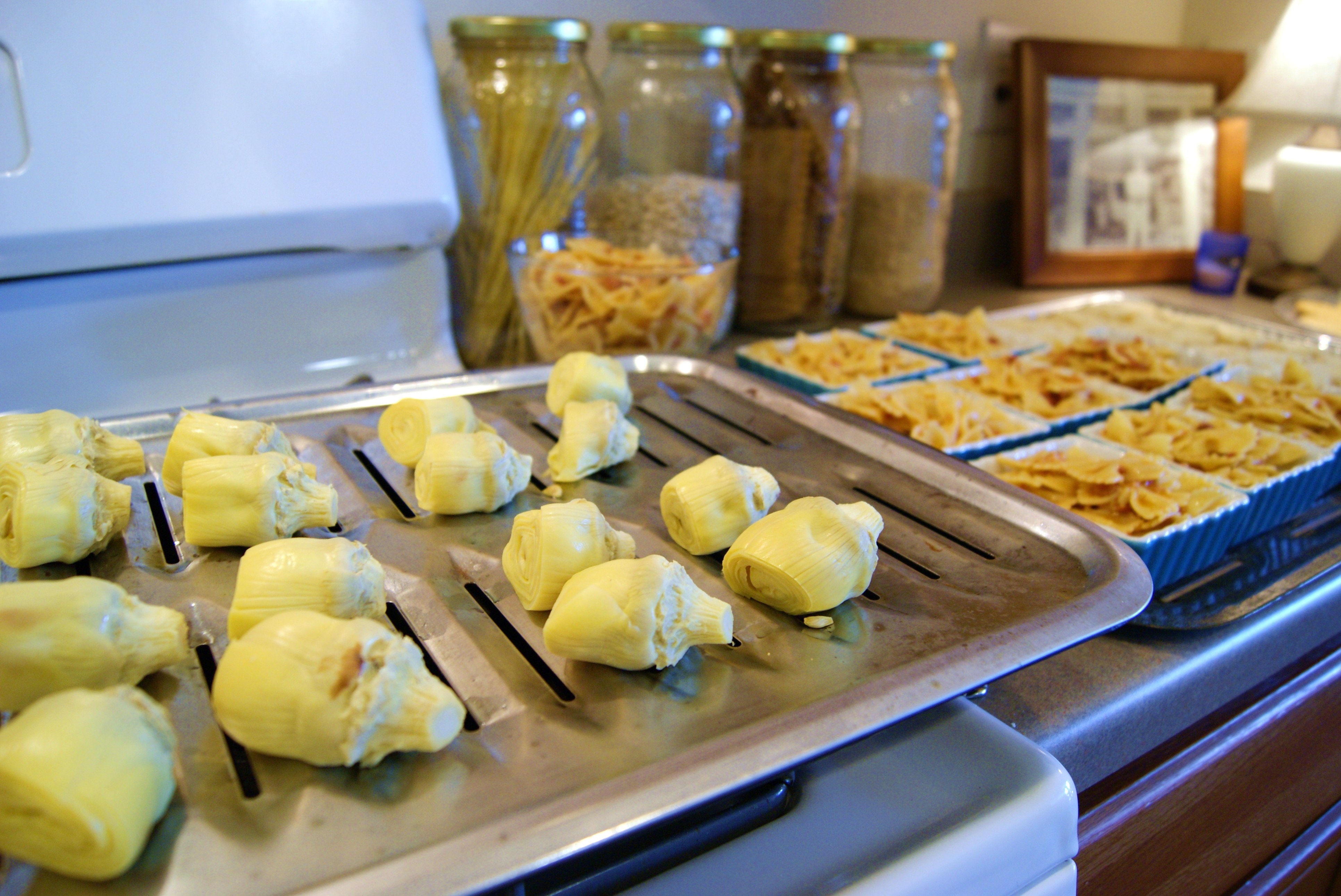 Start with canned artichoke hearts (unflavored), drizzled with olive oil, sqeeze over some lemon juice, and sprinkle with parmesan cheese and garlic salt. Grill until the cheese is crusty and slightly browned. So yummy and so easy. It’s healthy and cheap too. Can’t beat that!