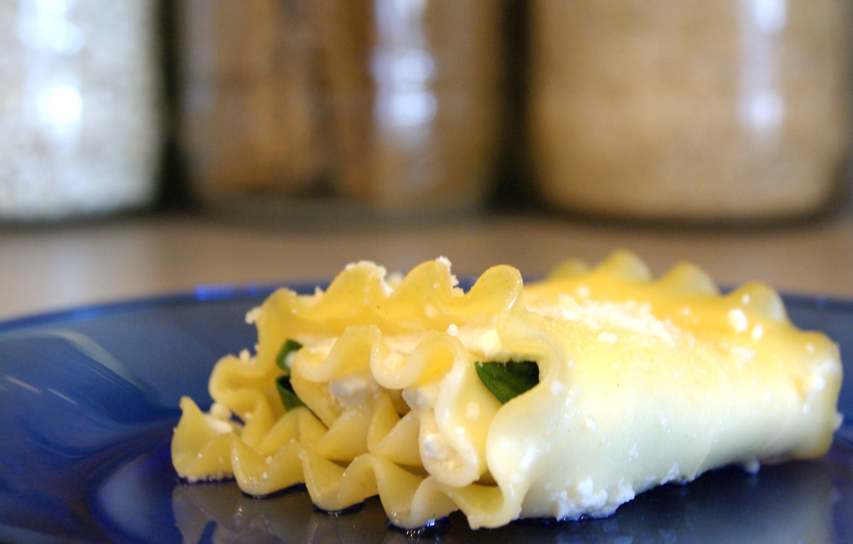 Simply boil and drain the lasagna noodles. Then fill with raw spinach and ricotta cheese. Roll them up and bake at 350 for 20 min. (optional-top with cheese or tomato sauce)