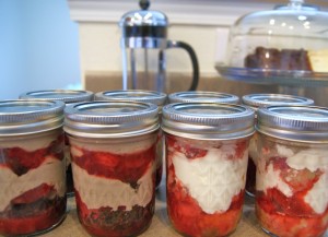 I layered pre-made pound cake with defrosted frozen sliced strawberries (the kind that comes in syrup) and whipped cream. I made half with chocolate cake and chocolate whipped cream and half with vanilla cake and regular whipped cream.