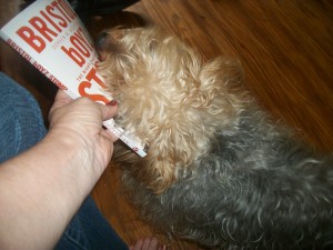 Louie giving the book a hug