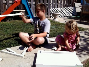 What a tough week this has been!! On a lighter note our 3-year-old Adriana is starting 3-day a week pre-school in a few weeks. Do you all remember like just yesterday I shared her birth with you?? The other day her older brother Dominic decided to build a crib for his baby sisters baby doll. They worked on the project together. How adorable is that?